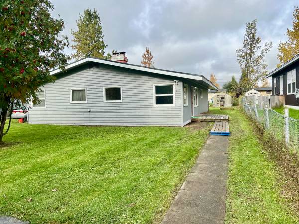 Small, cute, cozy & clean- ranch style duplex for rent. It has 2 bedrooms, 1 bath, with a washer and dryer inside big yard, brand new carpet and move in ready. Located right off the Glenn Highway on Muldoon.