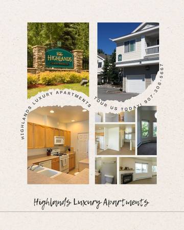 Our Anchorage, AK 1 & 2 bedroom apartments at the Highlands Luxury Apartments feature private entrances, a gas fireplace, large walk-in closets, a garden tub in your bathroom. and a convenient washer and dryer is included in each apartment home.
