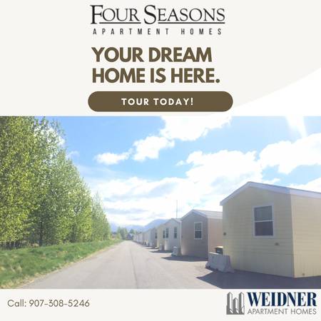 New 2 and 3 bedroom manufactured homes with 2 full bathrooms ready and waiting for you. Homes are approximately 1025 square feet of living space. Each home comes with granite counter tops in kitchen and baths. Enjoy taking advantage of your own full size washer and dryer! Four Seasons is a pet friendly community and we look forward to meeting your furry family members. The community is conveniently located close to Glenn Highway, military bases, shopping and entertainment.