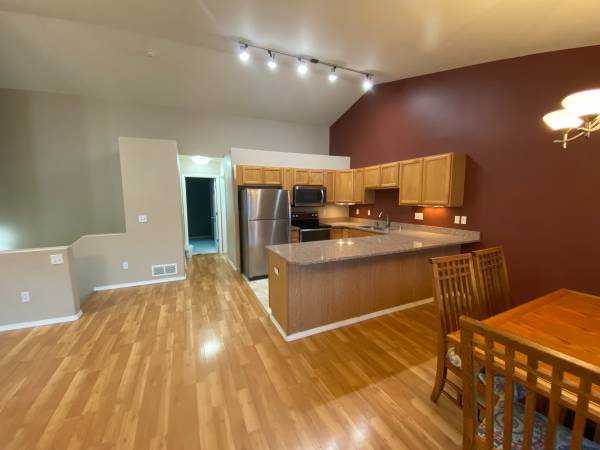 2 large bedrooms (each approx. 12x12 with large walk in closet) and 2 full baths. Large Garage. New LG Washer/Dryer, New Garage Door, Gas Fireplace, updated stainless steel whirlpool appliances and garbage disposal in kitchen, gas fireplace in living room, balcony for your grill. Very close to JBER, Providence, UAA. HOA (included in monthly rent) covers grounds, snow removal in winter, and water for unit.