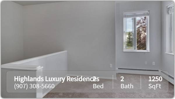 Our Anchorage, AK 1 & 2 bedroom apartments at the Highlands Luxury Apartments feature private entrances, a gas fireplace, large walk-in closets, a garden tub in your bathroom. and a convenient washer and dryer is included in each apartment home.