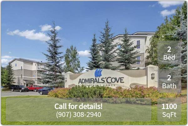 Description: Admirals Cove Apartment Homes in Anchorage AK offers open and distinctive 2 bedroom apartments with all the upgrades and amenities you would expect to find in a new home. Located on Debarr Road with easy access to the number 8 and 15 bus routes, getting around town is easy whether you drive or prefer public transportation. Nunaka Valley Park is right next door, or take a 5-minute stroll to the popular Russian Jack Springs Park where you can enjoy seasonal activities like frisbee golf, sledding, lighted cross country skiing, golf, and much more! Admiral's Cove Apartment Homes is located in the Ptarmigan Elementary School District, Clark Middle School District, and Bartlett High School District.