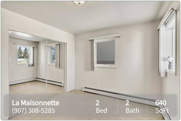 La Maisonnette 1 & 2 bedroom Apartment Homes in Anchorage, AK are 5 minutes from the airport, downtown, shopping & restaurants, and bike paths & parks with gas fireplaces, and balconies.