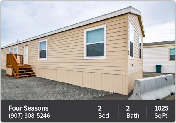 New 2 and 3 bedroom manufactured homes with 2 full bathrooms ready and waiting for you. Homes are approximately 1025 square feet of living space. Each home comes with granite counter tops in kitchen and baths. Enjoy taking advantage of your own full size washer and dryer! Four Seasons is a pet friendly community and we look forward to meeting your furry family members. The community is conveniently located close to Glenn Highway, military bases, shopping and entertainment.