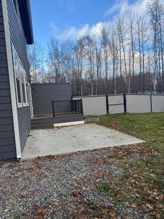 Contemporary styled Wasilla luxury duplex built in 2023. Large spacious rooms with high ceilings give you all the comforts of home. Open floor plan, SS appliances, waterproof flooring, large bedrooms. Spacious open floor plan with high ceilings Quartz countertops Stainless steel appliances Luxury vinyl plank waterproof flooring. Large bedrooms, loft and office area. Primary suite is designed for privacy and luxury with walk in closet, step ceiling with crown molding and rope lighting. Each unit has a two car finished garage with a floor drain, water softener, unit heater and an on demand water heater and a fenced in back yard. Ideal location minutes from the highway and city center. Trex backyard decks face west to enjoy the summer sun. Duplex is surrounded by trees for privacy. 2050 square feet each unit. Owner lives on other side. Unit is the right side.