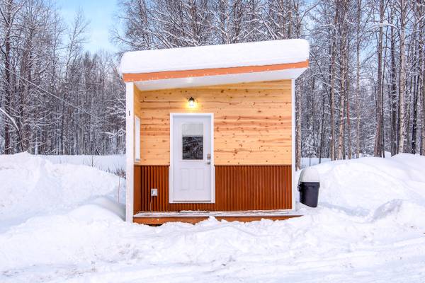 On the back of the house is an enclosed shed for a safe dry place to store your bike or skis.