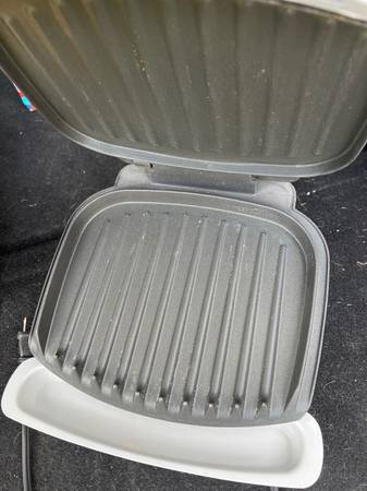 George Forman Grill - Model: Lean Mean Fat Reducing Machine. Sloped with tray to catch drippings. $20 obo. Text 907-33zero-411one.