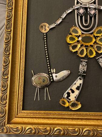 I recycle old jewelry, whole pieces and parts of old, no longer used, inherited, unwanted jewelry: bracelets, pendants, necklaces, rings, charms, earrings, and all of the tiny connectors of jewelry as well, beads, and things I find on the ground. The things people are throwing away or have lost interest in, I take them and give them a new life. There is 925 silver in some of the pieces used to make Bella and Mr Sparkles.