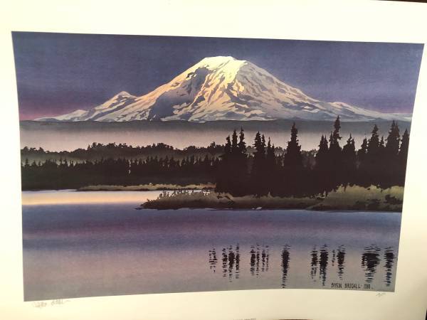 “Mountain Majesty” a limited edition print by acclaimed Alaskan artist Byron Birdsall (American, 1937-2016) It is loose in prime condition, signed and numbered (AP) print measuring 18” tall x 25”...