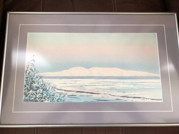 winter beauty of Mount Susitna, from a vantage point across Cook Inlet from Anchorage, Alaska evoking a sense of wonder and tranquility as dusk settles in!