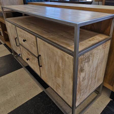 Crafted from solid mango wood and accented with durable metal, this sideboard combines rustic charm with industrial style.