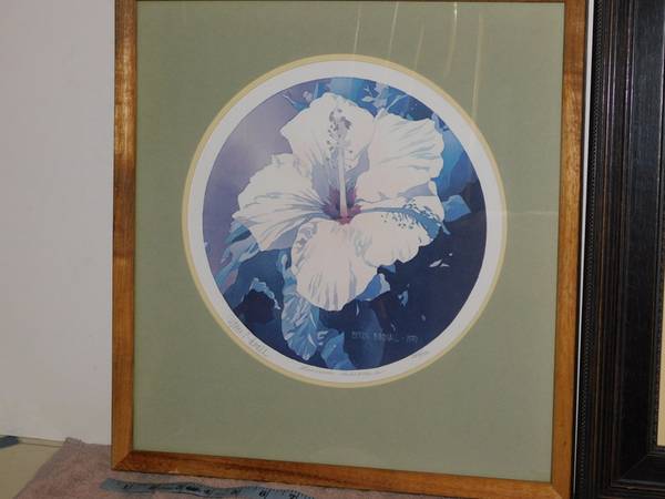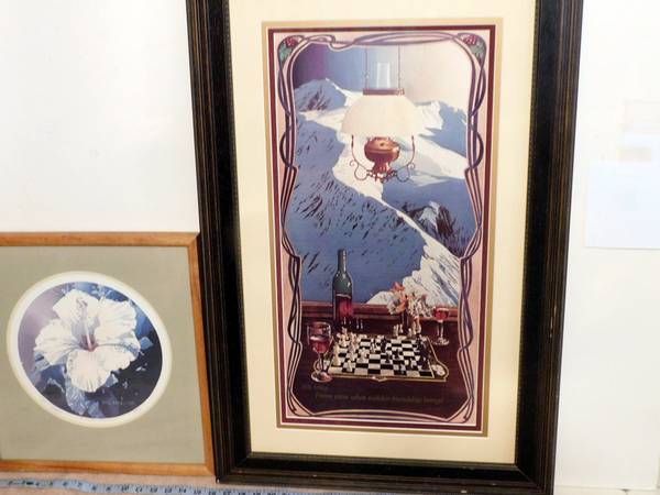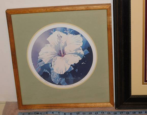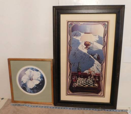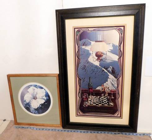 Both prints are framed. Some wear to frames. Lemon Hibiscus print is signed and numbered. Chessboard print is not hand signed or numbered. Local pickup only. $250 for both prints. Please text message with something about the prints. Cash only, not interested in trades.