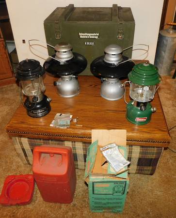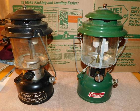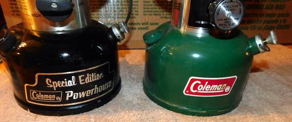 Both Coleman lantern's are dual type. The Powerhouse is dated on the bottom 12/89. The Green 220 is dated 7/78 on the bottom. Both are showing surface wear and have some fuel in the tanks.