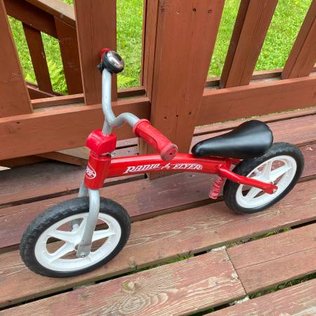 Radio flyer balance bike - Adjustable seat, bell $25 firm in Eagle River on Raven Drive or during the weekday I can bring to work: 1251 Muldoon Rd, 8-4
