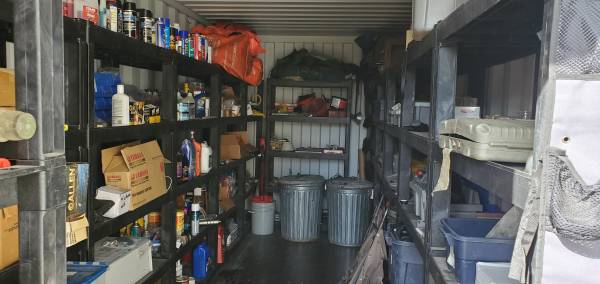 Power washer, air compressor, lawn mower, weed wackers, power tools, hand tools. Every wrench you could want, automotive tools. Spare parts for boats/engines. If you need it, its already in the Connexes!