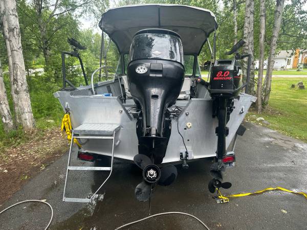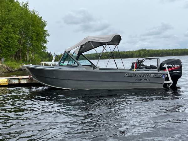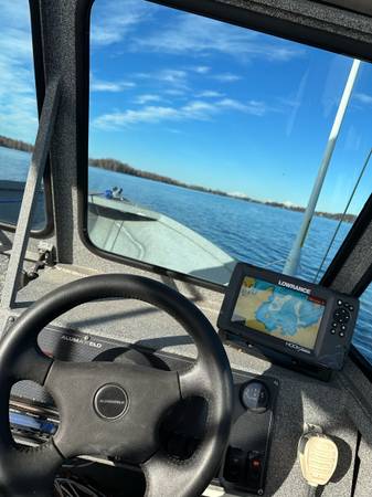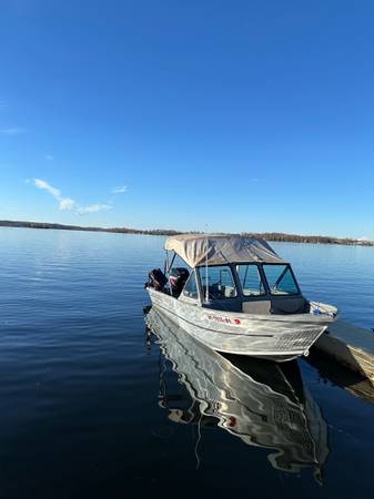 A very good fishing boat! Trailer is like new! Clean title and trailer title.Runs great and almost never has a drop of water in the bottom after running all day. Bought this past summer, and replaced old lowrance system with a brand new Lowrance Hook Reveal 7ts with garmin maps. Replaced old battery, replaced front navigation light and mount, replaced old dash wiring, added blue led lights under deck water channels, recent alumashine on exterior, added vhf radio antenna, new bilge, new fuel line, motor is a 04 Mercury75 Optimax that absolutely makes this boat fly!and 04 Mercury 8hp kicker. Had plans to add new seats and new top. But I realize I’d rather have 2 snow machines for winter. And don’t get in the water as much as I’d like. Come check it out! 17500OBO
