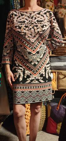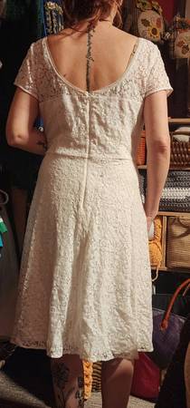4 dresses for casual, cocktail party, wedding, whatever. Very comfortable and good quality. All new accept white one. $10.oo Olive size 14, $10.oo white size 12, $15.oo midnight blue size 14, $5.oo...