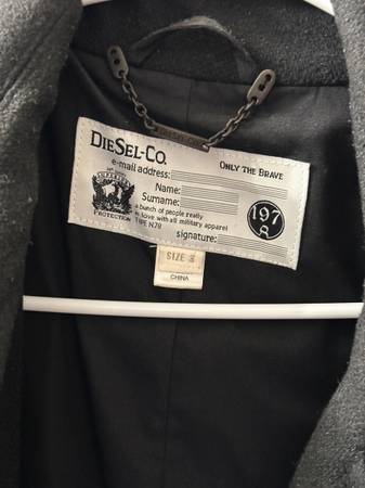 Great condition Wool Peacoat by Diesel, Mens size Small. Actual color is more Black than the pictures show. Barely used, very nice quality!