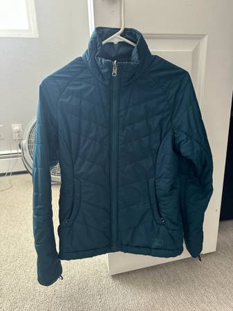 Two piece women’s coat. Light down interior and shell exterior. Some staining on the interior down jacket collar. Priced accordingly. If interested text .