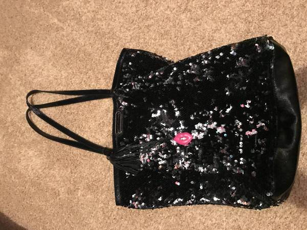 In great condition. Lined with black and great cheetah print fabric. Sparkles intact I'm both sides of bag! Text 907-202-142two $25