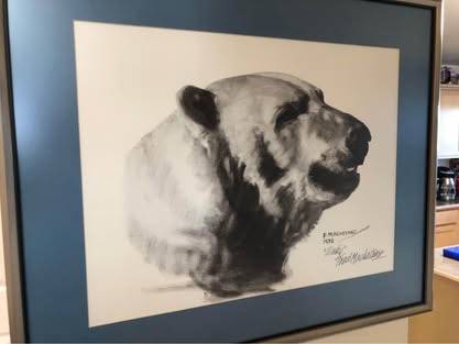 The work depicts a polar bear who was originally orphaned on the Alaska North Slope in 1975, rescued and re-homed to the Alaska Zoo where he lived until his death in 1995