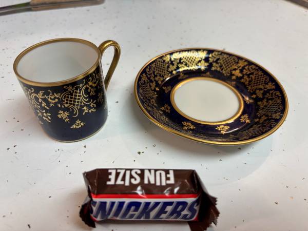 Small size. Decorative tea cup Will accept offers. I have an entire collection to sell of different designs, sets. Mugs. Estate sale