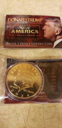 24k gold coin, mug shot card, 30.00 each. trump bills are 13.00 each. cash only, fcfs no holds. piuck up in anchorage. call or message me at nine 07 four 41 11 two seven