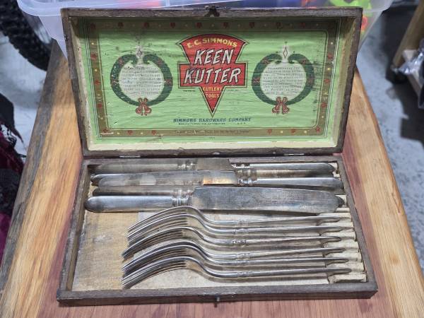 For sale is a beautiful antique cutlery set from the renowned E.C. Simmons Hardware Company under their famous "Keen Kutter" brand. This set comes in its original oak presentation box, making it a wonderful find for collectors and enthusiasts of vintage Americana.