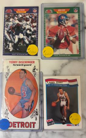 Vintage baseball cards, foot ball cards, and basketball cards! Commemorative baseball collectors coins, magazines and more. Only asking $300 for everything. Includes Pete Rose cards (recently inducted into the Hall of Fame). Over $450 worth of cards and memorabilia included in collection! Not all cards included in images in listing