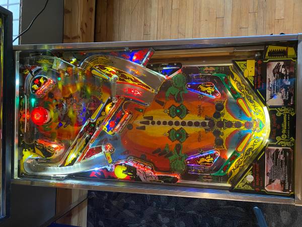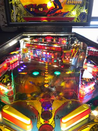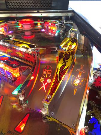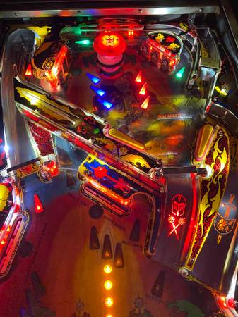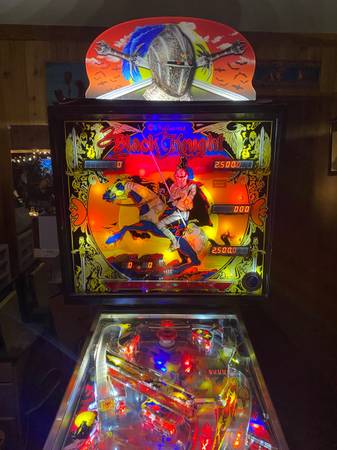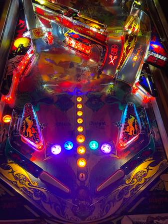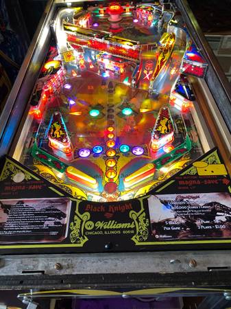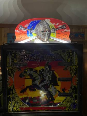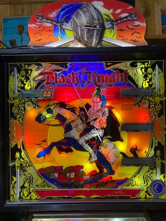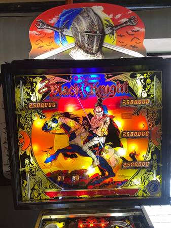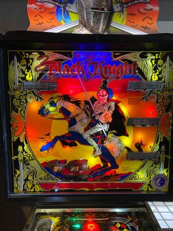 Classic 1980 Black Knight Pinball machine in excellent condition with full LED lighting, new back glass, plastic playfield protector, custom lit up ramps, additional lighting throughout the machine, added topper, new sound chips, a new lockdown bar, new legs, new modern integrated board that eliminates the two board connection. Also has the original two boards that work just fine. Everything works as it should and in a lot of cases, even better than the original. Everything is fully functional and is set up to take money. If interested call or text nine073six 21zero6seven