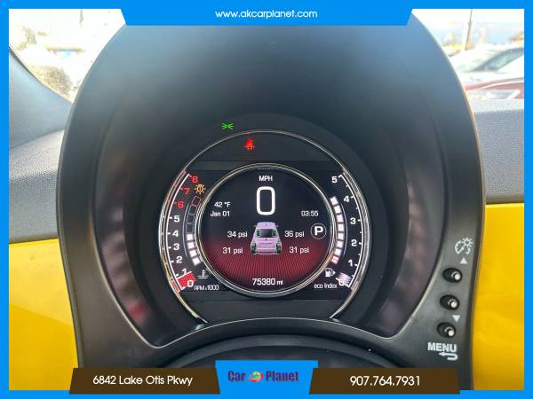 Bluetooth Wireless, Daytime Running Lights, FWD, Fog Lights, Alpine Premium Sound, Hill Start Assist Control, Tilt Wheel, Keyless Entry, CD/MP3 (Single Disc), 4-Cyl, MultiAir, 1.4L, Cruise Control, Alloy Wheels, F&R Head Curtain Air Bags, Power Door Locks, Side Air Bags, Traction Control, AM/FM Stereo, Dual Air Bags, Blue&Me Telematics, Rear Spoiler, Electronic Stability Control, Anti-Theft System, ABS (4-Wheel), Power Windows, Power Steering, Auto, 6-Spd AutoStick, Air Conditioning Hatchback Hatchback 4 2 FWD 4-Cyl, MultiAir, 1.4L Yellow Gasoline Black Auto, 6-Spd AutoStick