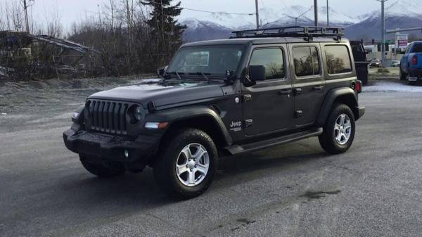 ***3 month/3,000 mile powertrain warranty***2018 Jeep Wrangler Unlimited Sport S Granite Crystal Metallic Clearcoat 4WD 2.0L I4 DOHC 8-Speed Automatic1-Yr SiriusXM Radio Service, 220 Amp Alternator, 240 Amp Alternator, 3.45 Rear Axle Ratio, 4-Wheel Disc Brakes, 7 & 4 Pin Wiring Harness, 7.0 Touchscreen Display, 700 Amp Maintenance Free Battery, 8 Speakers, ABS brakes, Air Conditioning, Air Conditioning w/Auto Temperature Control, Air Filtering, Alpine Premium Audio System, AM/FM radio, Anti-Spin Differential Rear Axle, Apple CarPlay, Automatic Headlamps, Auxiliary Switches, Black 3-Piece Hard Top, Brake assist, Bridgestone Brand Tires, Class II Receiver Hitch, Cloth Low-Back Bucket Seats, Cluster 7.0 TFT Color Display, Compass, Deep Tint Sunscreen Windows, Delay-off headlights, Driver door bin, Driver vanity mirror, Dual front impact airbags, Dual front side impact airbags, Electronic Stability Control, For More Info, Call 800-643-2112, Freedom Panel Storage Bag, Front 1-Touch Down Power Windows, Front anti-roll bar, Front Bucket Seats, Front Center Armrest w/Storage, Front fog lights, Front reading lights, Google Android Auto, GPS Antenna Input, Integrated Center Stack Radio, Integrated roll-over protection, Leather Wrapped Steering Wheel, Low tire pressure warning, Manufacturer's Statement of Origin (DISC), Non-Lock Fuel Cap w/o Discriminator, Normal Duty Suspension, Occupant sensing airbag, Outside temperature display, ParkView Rear Back-Up Camera, Passenger door bin, Passenger vanity mirror, Power Heated Mirrors, Power steering, Quick Order Package 28S Sport S, Radio data system, Radio: Uconnect 3 w/5 Display, Radio: Uconnect 4 w/7 Display, Rear anti-roll bar, Rear reading lights, Rear Window Defroster, Rear Window Wiper/Washer, Remote Keyless Entry, Security Alarm, SiriusXM Satellite Radio, Speed control, Speed Sensitive Power Locks, Split folding rear seat, Steering wheel mounted audio controls, Sun Visors w/Illuminated Vanity Mirrors, Tachometer, Technology Group, Telescoping steering wheel, Tilt steering wheel, Traction control, Trailer Tow & HD Electrical Group, Trip computer, USB Host Flip, Variably intermittent wipers, Wheels: 17 x 7.5 Black Steel Styled, Wheels: 17 x 7.5 Tech Silver Aluminum.Come to our website at www.accak.com to see our Specials!!! Anchorage Chrysler Dodge Jeep Ram is your Hometown Dealer!! Call 907-276-1331 for help with any of our Products or Services. Every attempt to have correct equipment listed has been taken, please see the cars Factory Window Sticker for exact equipment on these vehicles.Awards:* 2018 KBB.com 10 Most Awarded Brands