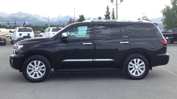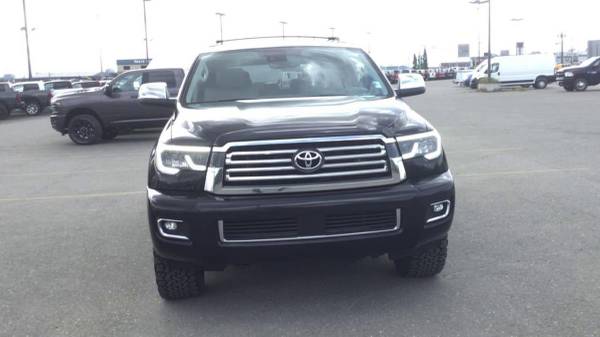 ***3 month/3,000 mile powertrain warranty***2019 Toyota Sequoia Platinum Gray 4WD i-Force 5.7L V8 DOHC VVT-i 6-Speed Automatic Electronic6-Speed Automatic Electronic, 4WD, 15 Speakers, 20 x 8 Alloy Wheels, 3rd row seats: split-bench, 4-Wheel Disc Brakes, 4.30 Axle Ratio, A/V remote, ABS brakes, Adaptive suspension, Air Conditioning, Alloy wheels, AM/FM radio: SiriusXM, Auto High-beam Headlights, Auto tilt-away steering wheel, Auto-dimming door mirrors, Auto-dimming Rear-View mirror, Auto-leveling suspension, Automatic temperature control, Brake assist, Bumpers: body-color, CD player, Compass, Delay-off headlights, Distance pacing cruise control: Dynamic Radar Cruise Control (DRCC), Driver door bin, Driver vanity mirror, Dual front impact airbags, Dual front side impact airbags, Electronic Stability Control, Entertainment system, Exterior Parking Camera Rear, Four wheel independent suspension, Front anti-roll bar, Front Bucket Seats, Front Center Armrest, Front dual zone A/C, Front fog lights, Front Heated & Ventilated Bucket Seats, Front reading lights, Fully automatic headlights, Garage door transmitter: HomeLink, Headlight cleaning, Headphones, Heated door mirrors, Heated front seats, Heated rear seats, Illuminated entry, Knee airbag, Leather steering wheel, Low tire pressure warning, Memory seat, Navigation System, Occupant sensing airbag, Outside temperature display, Overhead airbag, Overhead console, Panic alarm, Passenger door bin, Passenger vanity mirror, Perforated Leather Seat Trim, Power door mirrors, Power driver seat, Power Liftgate, Power moonroof, Power passenger seat, Power steering, Power windows, Radio: Entune Premium JBL Audio with Navigation, Rear air conditioning, Rear anti-roll bar, Rear reading lights, Rear seat center armrest, Rear window defroster, Rear window wiper, Reclining 3rd row seat, Remote keyless entry, Roof rack, Security system, Speed control, Speed-sensing steering, Split folding rear seat, Spoiler, Steering wheel memory, Steering wheel mounted audio controls, Sun blinds, Tachometer, Telescoping steering wheel, Tilt steering wheel, Traction control, Trip computer, Turn signal indicator mirrors, Variably intermittent wipers, Ventilated front seats, Voltmeter, 6-Speed Automatic Electronic, 4WD.Come to our website at www.accak.com to see our Specials!!! Anchorage Chrysler Dodge Jeep Ram is your Hometown Dealer!! Call 907-276-1331 for help with any of our Products or Services. Every attempt to have correct equipment listed has been taken, please see the cars Factory Window Sticker for exact equipment on these vehicles.Awards:* ALG Residual Value Awards, Residual Value Awards * 2019 KBB.com Brand Image Awards * 2019 KBB.com Best Resale Value Awards