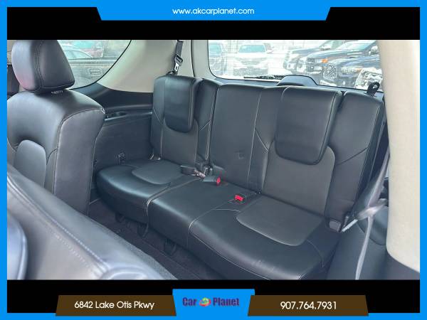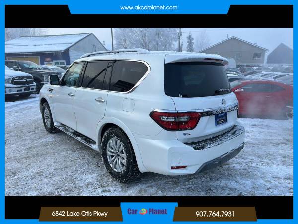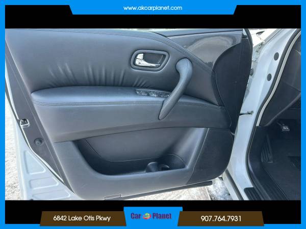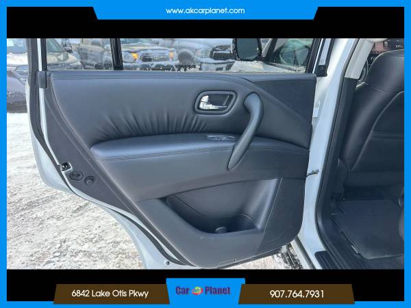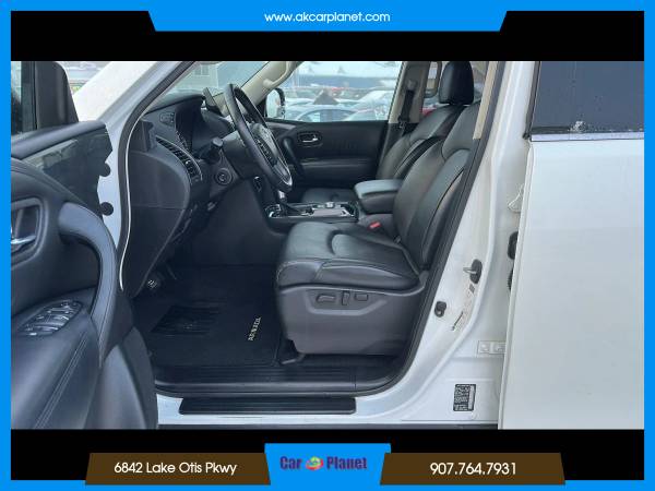 F&R Parking Sensors, Traction Control, Dual Power Seats, Backup Camera, Push Button Start, V8, 5.6 Liter, Side Air Bags, SiriusXM Satellite, Safety Shield 360, Alarm System, CD/MP3 (Single Disc), Lane Departure Warning System, Intelligent Cruise Control, LED Headlamps, Air Conditioning, Navigation System, Blind-Spot Warning, Heated Seats, Bluetooth Wireless, Tilt & Telescoping Wheel, Collision Warning, Daytime Running Lights, Power Door Locks, ABS (4-Wheel), Vehicle Dynamic Control, NissanConnect, Automatic, 7-Spd w/Overdrive, Manual Mode & Synchronized Rev Control, Power Windows, Keyless Entry, Power Steering, F&R Head Curtain Air Bags, Third Row Seat, Dual Air Bags, Running Boards, Hill Start Assist, AM/FM/HD Radio, Alloy Wheels, 4WD SUV SUV 8 4 4WD V8, 5.6 Liter White Gasoline Black Automatic, 7-Spd w/Overdrive, Manual Mode & Synchronized Rev Control