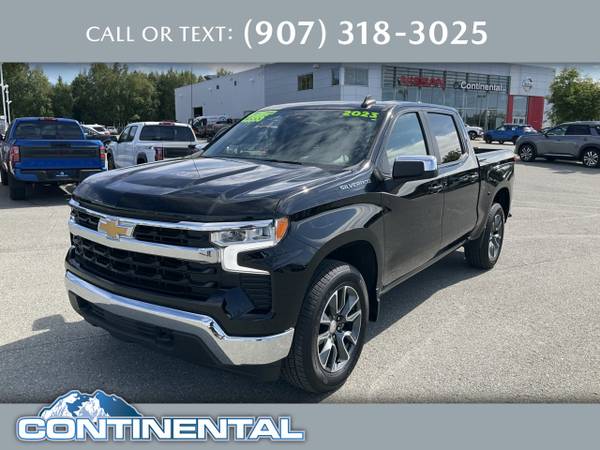 Only 9,080 miles! Some things are too hard to pass up. A real stump puller! Gross Vehicle Weight Rating (GVWR) of 7,000 lbs, Maximum Towing Capacity of 9,000 lbs, 310 horsepower, 430 foot-pounds of torque, 2.7 Liter DOHC, 8-Speed A/T, Four Wheel Drive, and crew cab with a short bed. You'll forget how you ever drove without a rear view camera. Stop by the showroom today to give her a test drive. Ride in style with this 2023 Silverado 1500's sleek tinted windows. This truck includes: extremely convenient cruise control, tire pressure monitoring system and airbags.