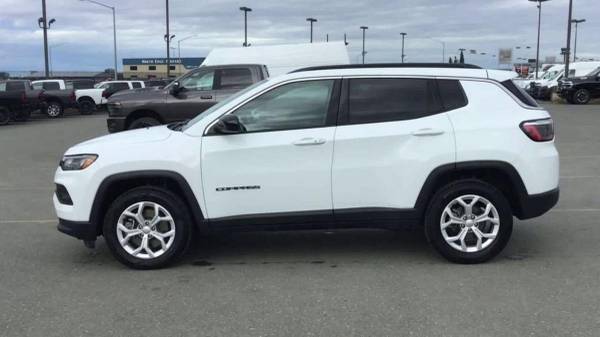 ***3 month/3,000 mile powertrain warranty***2024 Jeep Compass Latitude Bright White Clearcoat 4WD 2.0L I4 DOHC 8-Speed AutomaticOdometer is 9211 miles below market average!4WD, 17 x 7 Aluminum Wheels, 3.73 Final Drive Ratio, 4-Wheel Disc Brakes, 6 Speakers, ABS brakes, Air Conditioning, Alloy wheels, AM/FM radio: SiriusXM, Auto High-beam Headlights, Brake assist, Bumpers: body-color, Compass, Delay-off headlights, Driver door bin, Driver vanity mirror, Dual front impact airbags, Dual front side impact airbags, Electronic Stability Control, Emergency communication system: Jeep Connect, Four wheel independent suspension, Front anti-roll bar, Front Bucket Seats, Front Center Armrest w/Storage, Front fog lights, Front License Plate Bracket, Front reading lights, Fully automatic headlights, Heated door mirrors, Illuminated entry, Knee airbag, Leather Shift Knob, Leather steering wheel, Low tire pressure warning, Occupant sensing airbag, Outside temperature display, Overhead airbag, Overhead console, Panic alarm, ParkView Rear Back-Up Camera, Passenger door bin, Passenger vanity mirror, Power door mirrors, Power steering, Power windows, Premium Cloth/Vinyl Bucket Seats, Quick Order Package 29J Latitude, Radio: Uconnect 5 w/10.1 Display, Rear anti-roll bar, Rear seat center armrest, Rear window defroster, Rear window wiper, Remote keyless entry, Security system, Speed control, Split folding rear seat, Spoiler, Steering wheel mounted audio controls, Tachometer, Telescoping steering wheel, Tilt steering wheel, Traction control, Trip computer, Variably intermittent wipers, 4WD.Come to our website at www.accak.com to see our Specials!!! Anchorage Chrysler Dodge Jeep Ram is your Hometown Dealer!! Call 907-276-1331 for help with any of our Products or Services. Every attempt to have correct equipment listed has been taken, please see the cars Factory Window Sticker for exact equipment on these vehicles.24/32 City/Highway MPG