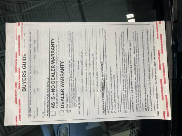 Gently driven, low miles. Value, reliability, safety... This is the complete package. Save money with a fuel-efficient combined EPA estimated rating of 31 MPG combined. Bringing you deals day in and day out. The rear view camera is perfect for backing into tight spots. Get it while it's hot! Powered mirrors are a welcomed upgrade. This certified 2025 Rogue includes: safe steering wheel controls, tinted windows, seamless Bluetooth integration, an air filter for the cabin and aluminum wheels.