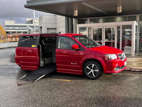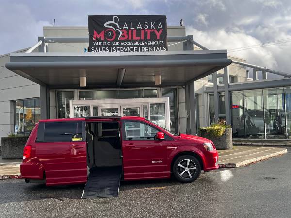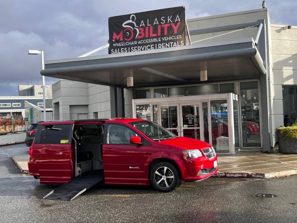 Dodge Grand Caravan SXT ( Inferno Red ) with Handicap conversion from Alaska Mobility, LLC featuring: Lowered Floor, Power Folding Wheelchair Ramp, Kneeling System and QRT Semi Automatic Wheel chair Tie Downs. Only 107K miles, Clean, Serviced and ready to go including brand new studded winter tires! Priced to sell at just $22,900. Trade-In's are always welcome. This van is currently at our Anchorage store but can also be shown in the Valley if needed.