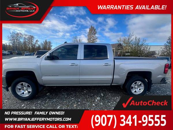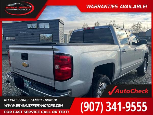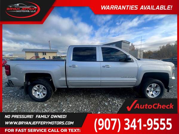 We are selling this 2018 Chevrolet Silverado 1500 Crew Cab LT Pickup. It comes loaded with options such as power windows and locks, Keyless entry, cruise control, brand new tires, tow package, bench seat in the front so this seats 6 and much more! Auto check shows that this vehicle has had 1 Owner and a clean title with no damage reported. If you would like to come by and take a look at this vehicle give us a call or text at (907)-341-9555 to schedule your appointment today! Or visit us at our location 4670 E Fattic Drive, Wasilla, AK 99654.