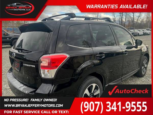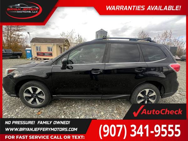 We are selling this 2018 Subaru Forester Limited. Comes with options such as power windows and locks, am/fm radio, bluetooth connectivity, traction control, cruise control, heated seats, backup camera and much more. Autocheck shows that this vehicle has had a few owners and a clean title. If you would like to come and take a look at this vehicle give us a call or text at (907)-341-9555 to schedule your appointment today. You can also just drive on by at our location along the Palmer-Wasilla hwy at 4670 E Fattic Drive, Wasilla, AK 99654.