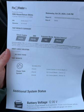 1996 Nissan Altima with very low miles. We bought it from the original owner and the vehicle is in good shape. It has studded tires on rims. Feel free to contact me with any questions. The car is in great shape and drives really well in the winter with the studs on it. Plus we put new summer tires on it