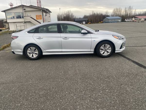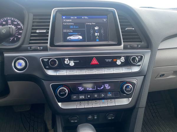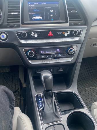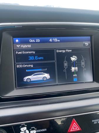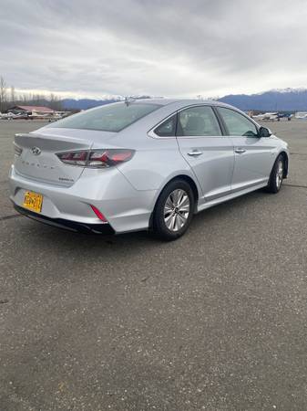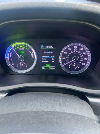 2019 Hyundai Sonata Hybrid. Gets fantastic fuel mileage, averaging around 44 mpg. I am the 2nd owner, having bought the car with 6,000 miles on it in 2021. Needing a larger vehicle to haul supplies is the reason for selling it. Remote start. Blind-spot monitoring, rear cross-traffic alert, and a rear-view camera. Just put the studded snow tires on so it is all set for winter. Summer tires have less than 4K miles on them. Two key fobs. Excellent condition inside and out. Have clean title in hand.