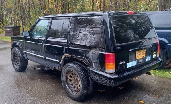 4x4, Inline 6 cylinder, 4 door automatic with 214,xxx miles. Obvious body & interior damage, but drives well and is dependable.