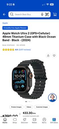 Apple Watch Ultra 2 (GPS+Cellular) 49mm Titanium Case with Black Ocean Band - Black - Purchased 06/25/2025 Flawless, looks brand new.