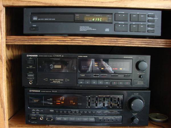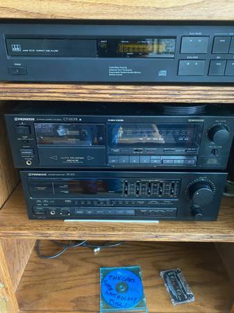 1990 or 1991 Pioneer stereo, Pioneer SX-201stereo receiver ADC model 16/2R compact disc player, Pioneer cassette deck CT-S507R. Pioneer 3 way speakers 150W CS-G403.
