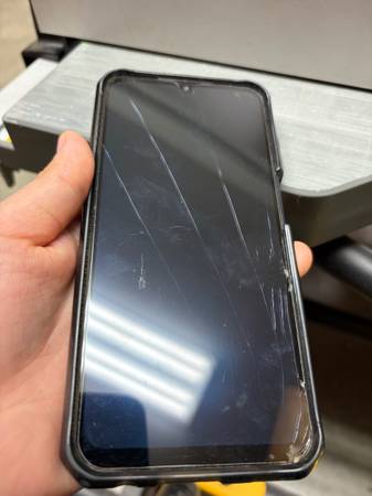 Cracked glass screen protector, battery is in good condition, and comes with a charger.