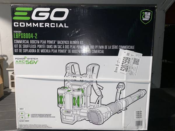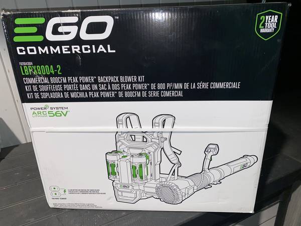 Ego commercial lawn blower backpack LBPX8004-2 2 - brand new 6Ah batteries and charger included EGO POWER+ Commercial 56-volt 800-CFM 190-MPH Battery Backpack Leaf Blower 6.0 Ah New in the box.