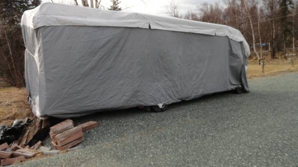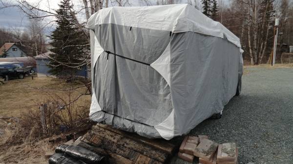 Motor home cover , Brand Classic 30-32 Length front straps have broken but it can be used with strap for the front side zipper for entrance for door . material is in good shape just the clips...