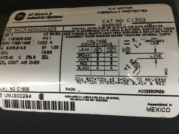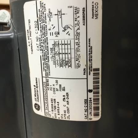 High end.Excellent condition like new.Low timeWas used on a meat grinder set up.115-230volt option-rotation option.Low RPM-1425-1725 RPM. 56 Frame with a base mount adapter thrown in free.Ball bearings.Capacitor start capacitor run.5/8 shaft.Super price.calls only 863-1155