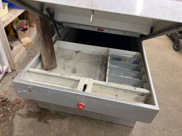 Knaack saddle box for pickup truck. Good condition overall. Steel. No dents. No keys for locks but should be easy enough to re-key. Hatch struts are weak. You can replace our just prop the hatch with a stick. Bottom is 60”x27”. Selling cheap because it’s in my way.